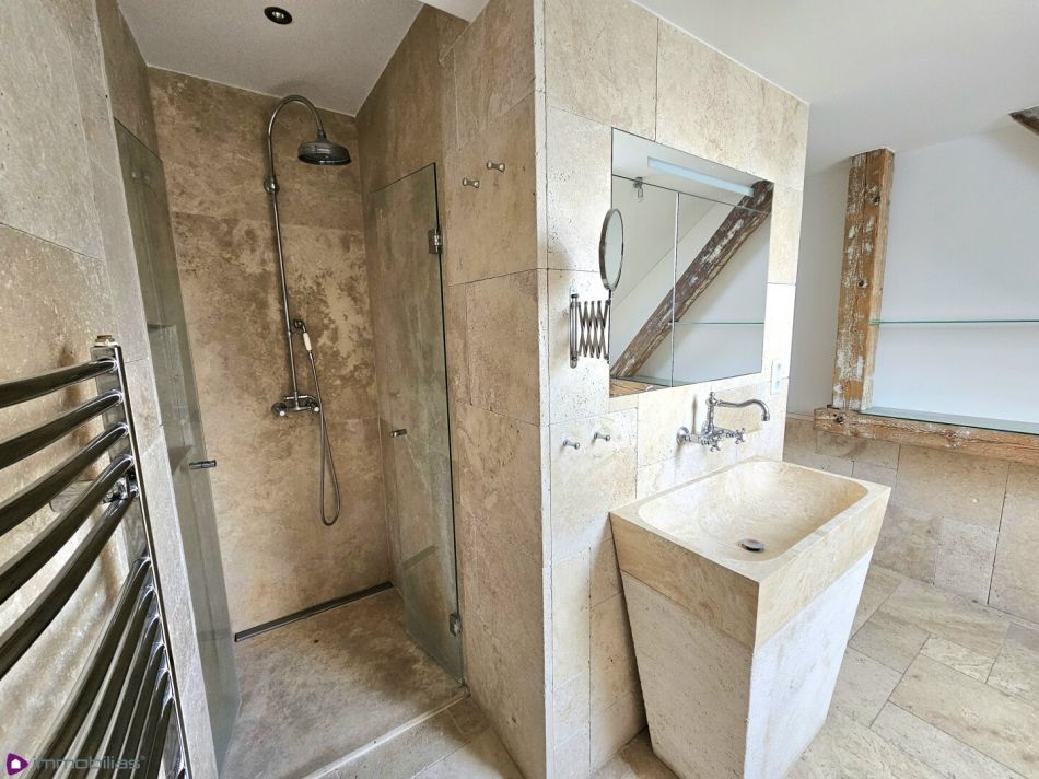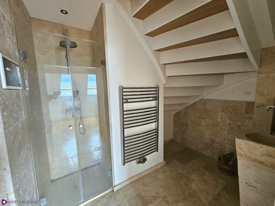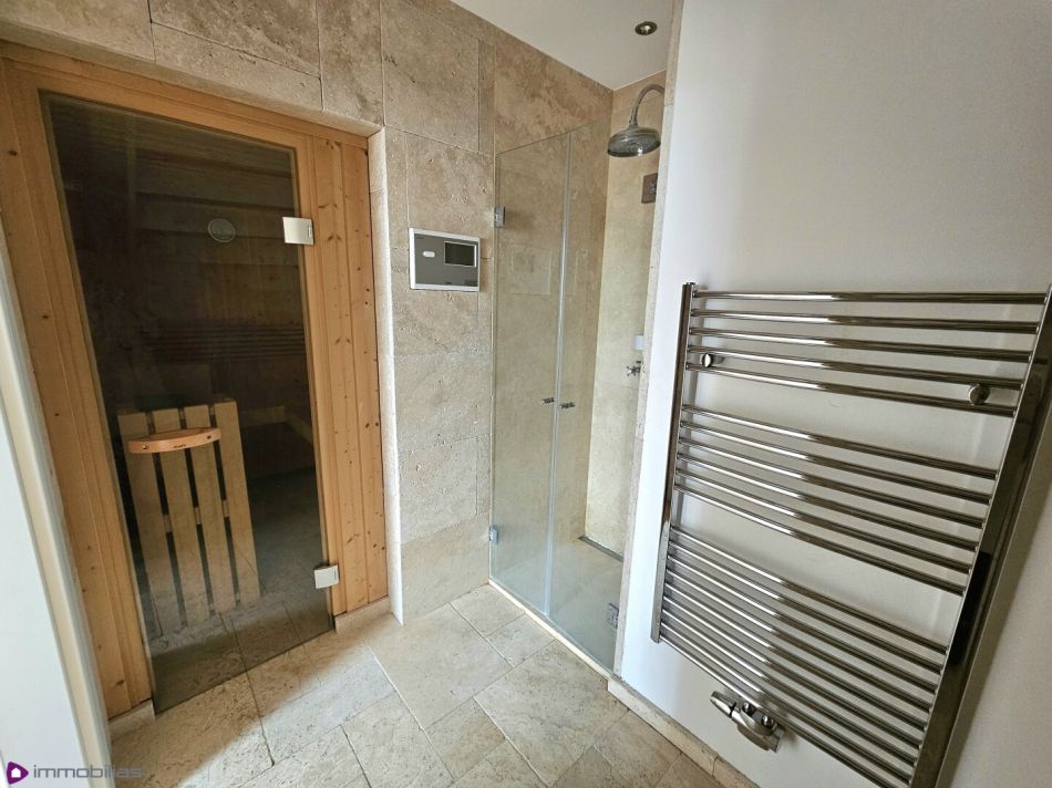 Badezimmer 2, ca 4,15 m², mit Glasdusche und anschließender Sauna, ca 3,30 m²