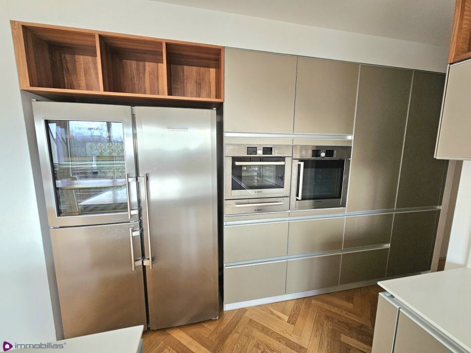 Klimaanlage, hochwertige Parkettböden/ tolles Feinsteinzeug, Designerküche mit Kochinsel und Vollausstattung, Sauna, Kamin; Fahrradabstellraum im Kellerbereich der Liegenschaft