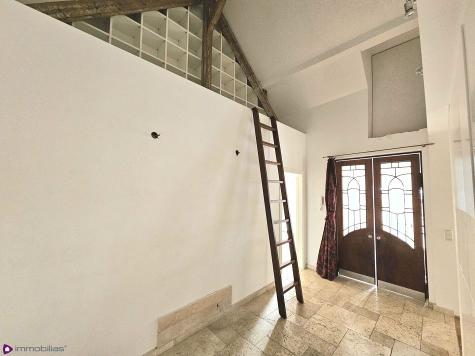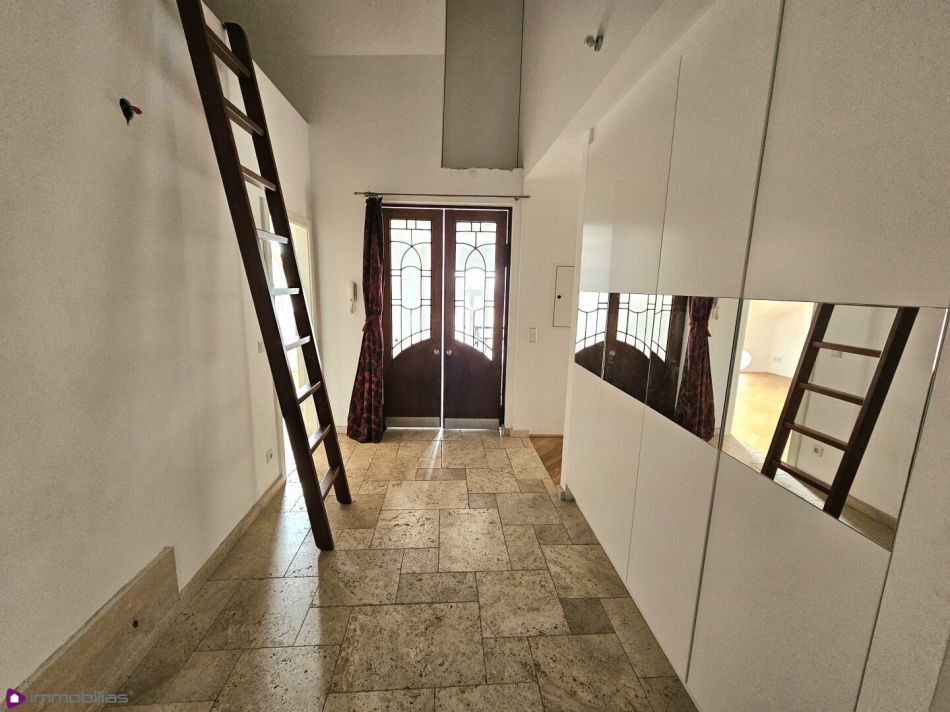geräumiges Vorzimmer, ca 20,09 m², mit Aufstieg über eine Leiter in einen "Hochsitz"- Bibliothek