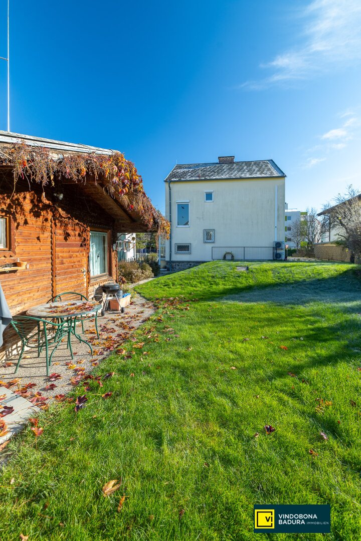 Als Zubau befindet sich links vom Haus eine Garage für einen PKW sowie ein großzügiger Lagerraum mit ca. 47 m² Nutzfläche. Im Garten lädt eine geräumige Holzhütte zum Entspannen ein, die im Inneren mit einer Sauna ausgestattet ist.