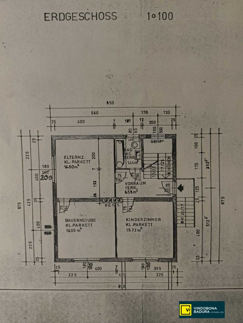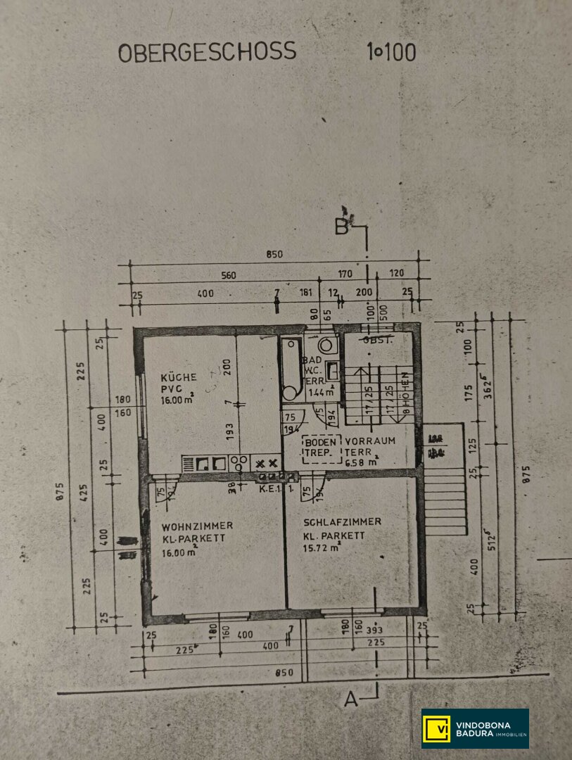 Obergeschoss: Vorraum, Bad & WC, Küche, Wohnzimmer, Zimmer;
