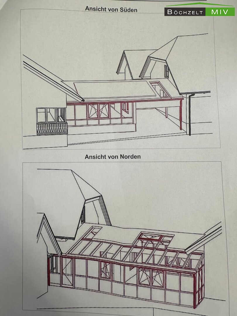 Diese beiden Objekte erschließen sich auf zwei Grundstücke, verbunden mit einem Wintergarten und einem Carport.Die Grundstücke befinden sich in absoluter Grünlage und teilen sich, wie folgt, auf: