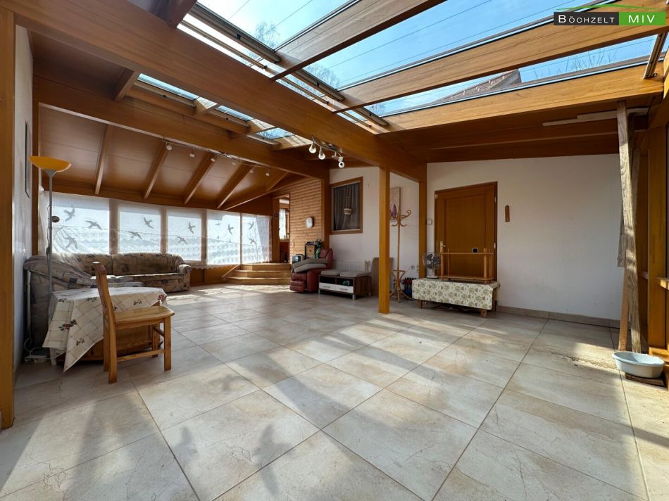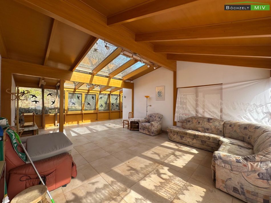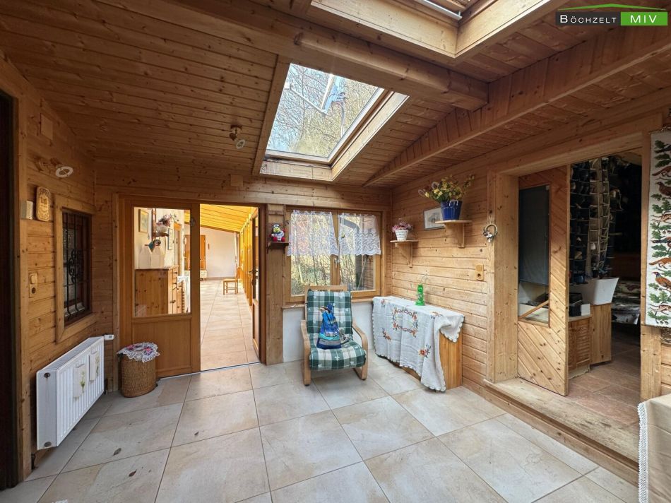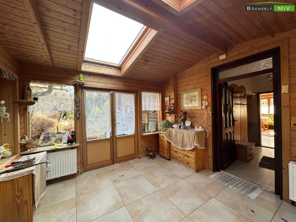 Es verfügt über folgende Räume: Eingangsbereich Wintergarten, Wintergarten, Zimmer, Wohnküche, WC, Badezimmer und einem Zimmer.