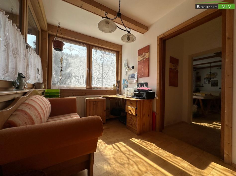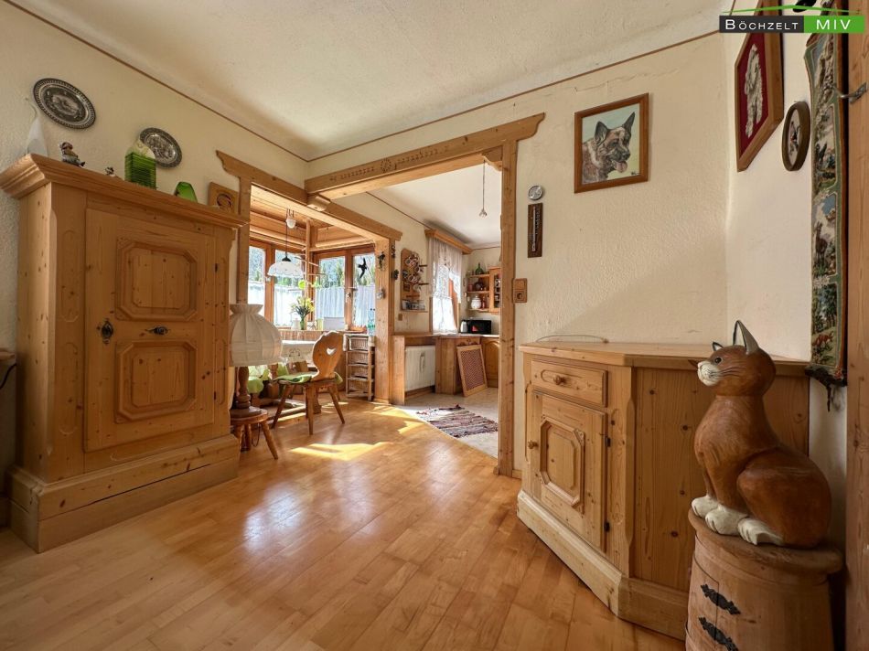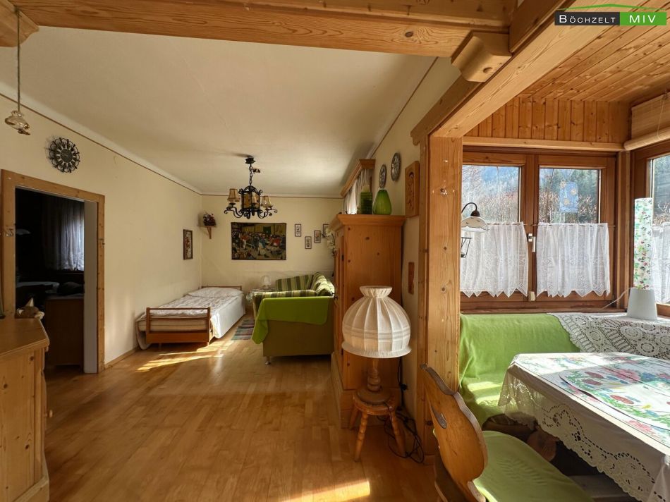 Es verfügt über folgende Räume: Eingangsbereich, Abstellraum, Vorraum, WC, Badezimmer, Wohnküche, Zimmer, Stiegenaufgang zum Obergeschoss, Wohnraum im Obergeschoss und einem Schlafzimmer.