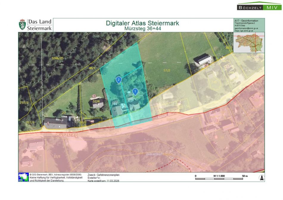 Die Grundstücke befinden sich in der gelben und roten Gefahrenzone.