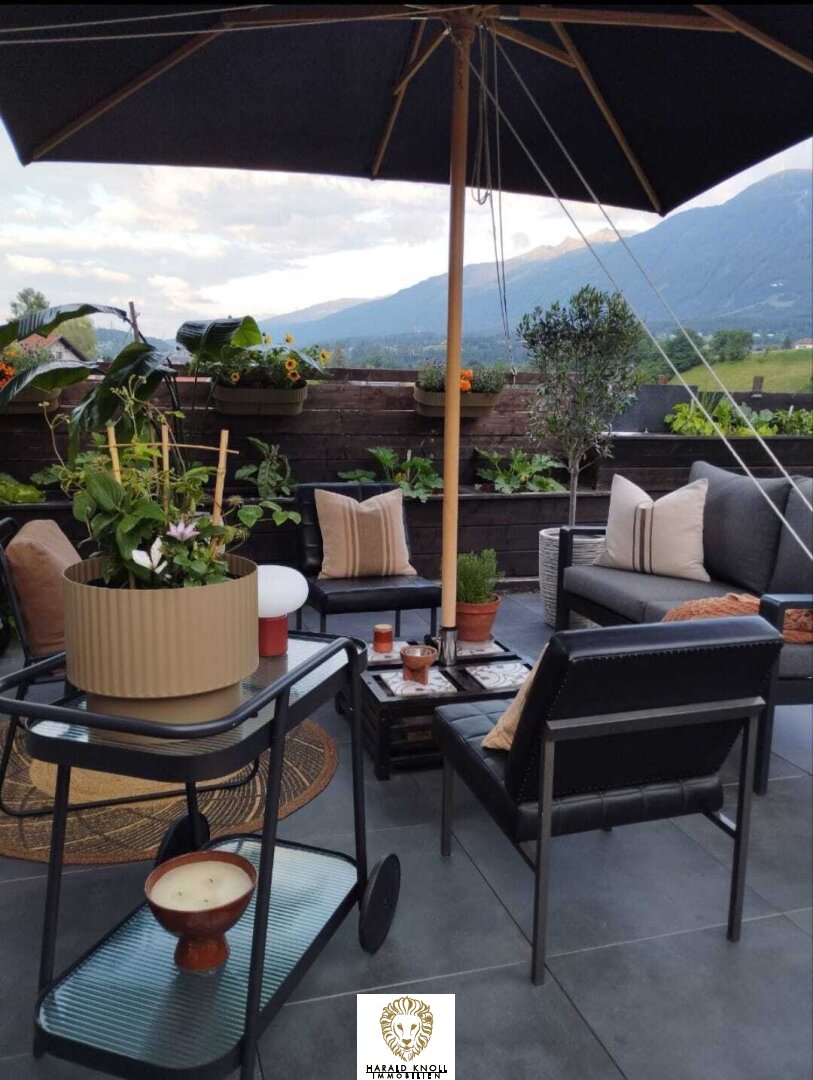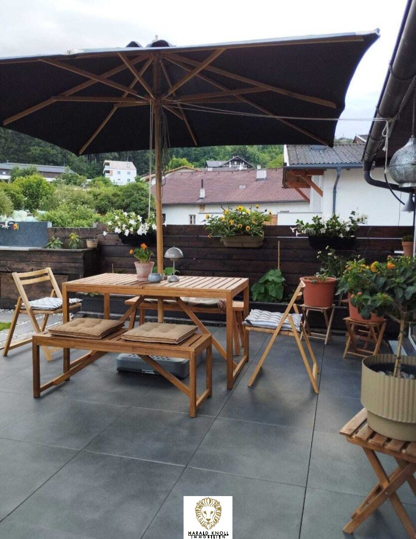 - 2023: Dachterrasse neu begrünt + hochwertige Terrassenplatten verlegt