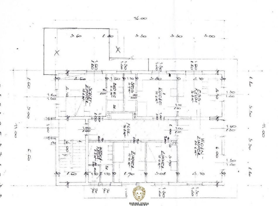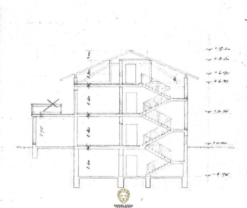 - Im 1. Obergeschoß befindet sich eine ca. 135 qm große Wohnung (großteils noch zum Sanieren mit Veranda und Terrasse)