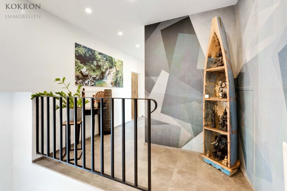 hier befinden sich im Erdgeschoss der Wohn-Essbereich (mit offenem Kamin und 2,80m Raumhöhe!) mit direktem Ausgang auf die Terrasse. Die moderne und top-ausgestattete Küche sowie ein Gäste-WC sind ebenfalls im Erdgeschoss zu finden. Über eine moderne Treppe gelangen Sie ins Obergeschoss, wo sich die privaten Räumlichkeiten befinden: 3 Zimmer, ein modernes Bad mit bodentiefer Dusche, ein getrenntes WC und ein Abstellraum stehen Ihnen hier zur Verfügung.