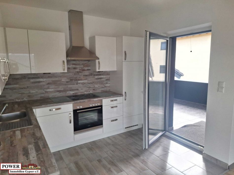 Die Wohnung ist mit einer modernen Einbauküche ausgestattet.