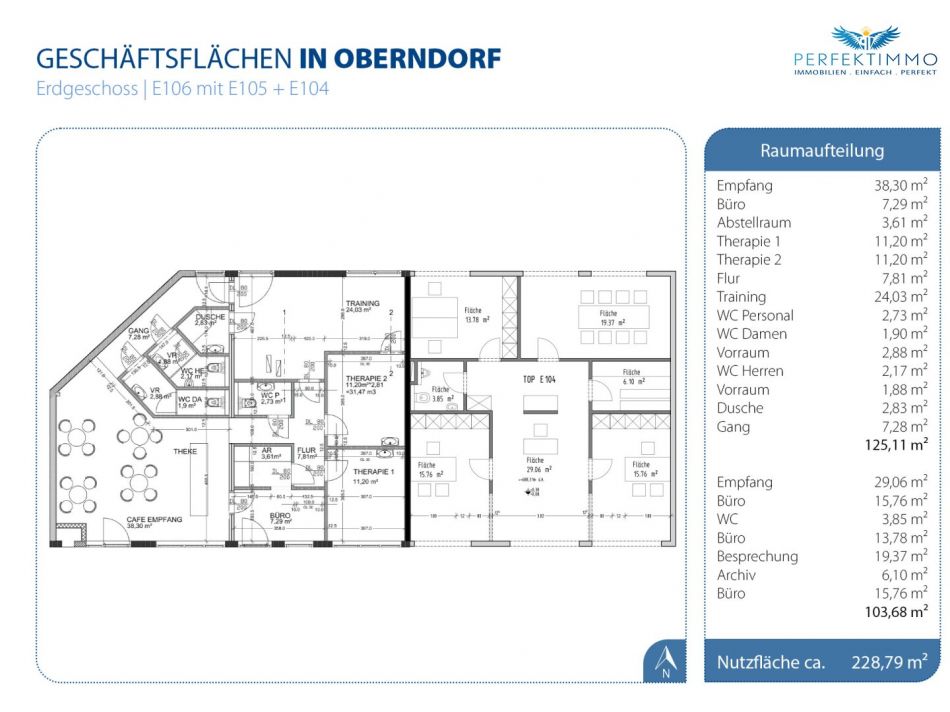 Super Anlageobjekt in der nobelsten Skiregion TirolsAnleger aufgepasst – exklusive Geschäftsräumlichkeiten in Oberndorf in Tirol als attraktives Gesamtpaket zu erwerben! In hervorragender Lage gelangen erstklassige Gewerbeeinheiten mit einer Gesamtfläche von rund 228 qm zum Verkauf. Das Paket umfasst die Einheit E104, die die nächsten drei Jahre als Physiotherapiepraxis genutzt wird, sowie die zusammengelegten Einheiten E105 und E106, die aktuell ebenfalls als moderne Praxis- und Therapieräume dienen. Die Räume überzeugen durch eine flexible Raumaufteilung und bieten vielseitige Nutzungsmöglichkeiten – sei es als Büro, Ordination, Verkaufsfläche oder für andere gewerbliche Zwecke.