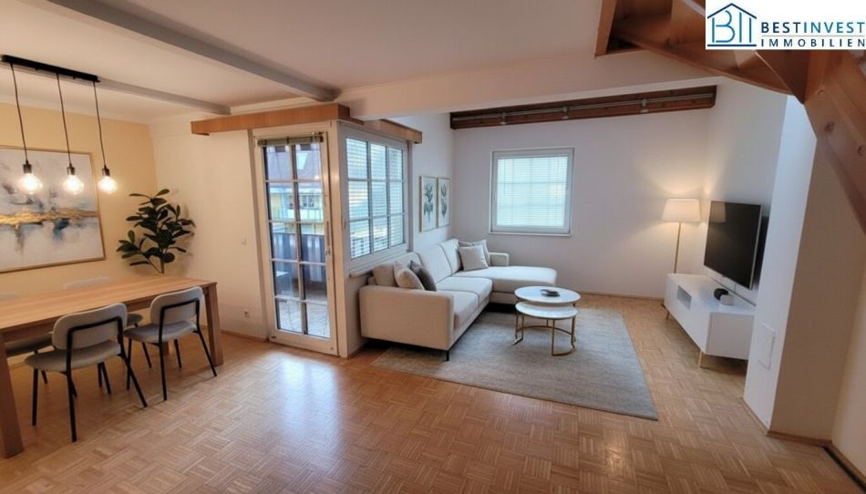 Diese attraktive „Maisonette – Wohnung“ befindet sich ruhiger Lage im Süden von Graz, eingebettet in einer exklusiven Architektensiedlung.Das elegante Zuhause erstreckt sich über zwei Etagen und bietet einen sonnigen Südbalkon, der zum Entspannen einlädt. Zur Wohnung gehört ein kleiner Gartenanteil, nicht groß doch ideal zur Erholung im Freien.