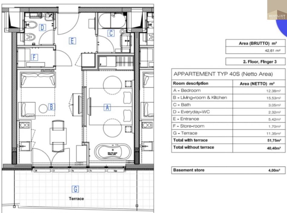 Wohnfläche: ca. 40,40 m²