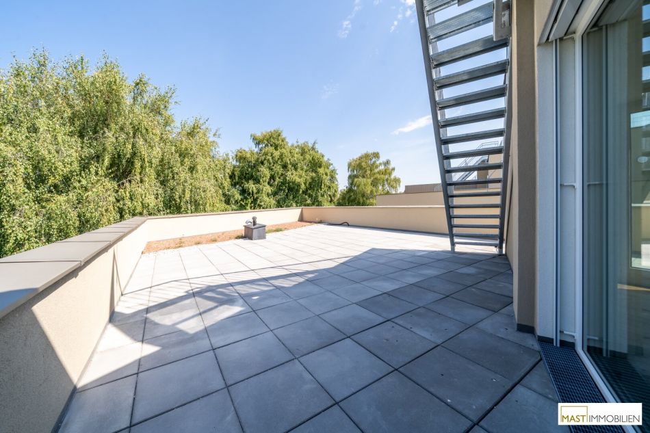 Die Wohnung befindet sich im 2. Liftstock (Dachgeschoss) und verfügt über 82,41 m² Wohnfläche + eine 128,88 m² große Terrasse + eine 51,08 große Dachterrasse / Gründach.