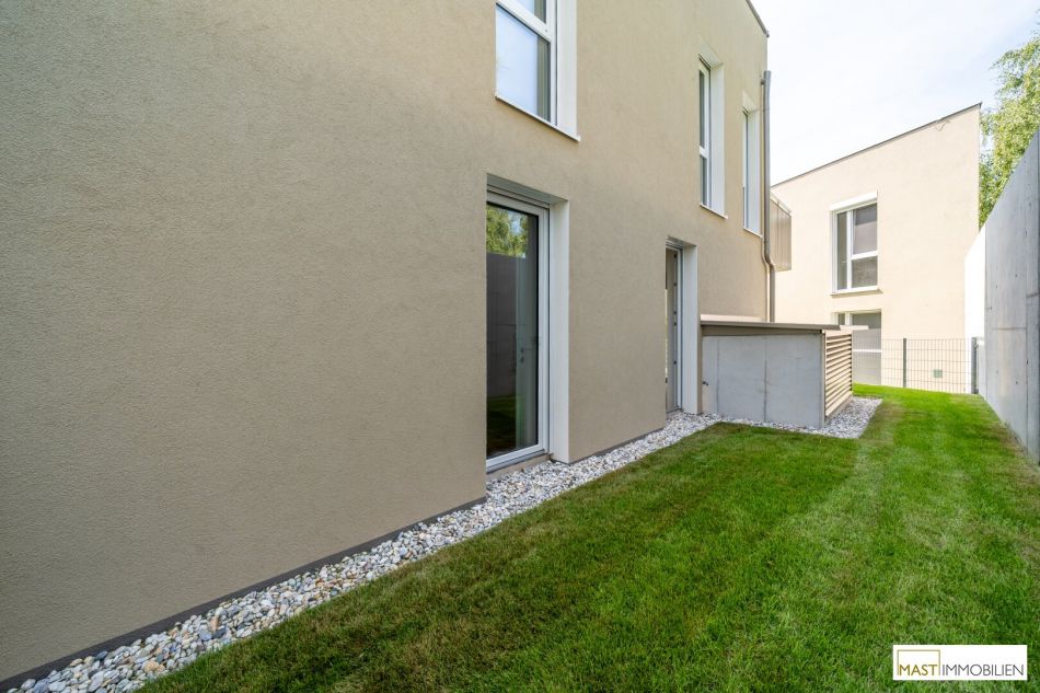 Die Wohnung befindet sich im Erdgeschoss und verfügt über 58,25 m² Wohnfläche + eine 14,79 m² große Terrasse + ein 40,31 m² großer Garten.