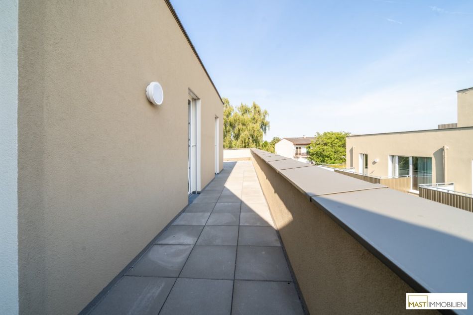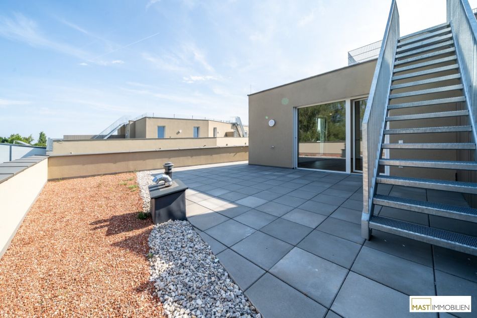 Die Wohnung befindet sich im 2. Liftstock (Dachgeschoss) und verfügt über 66,01 m² Wohnfläche + eine 76,15 m² große Terrasse + eine 34,08 große Dachterrasse / Gründach.