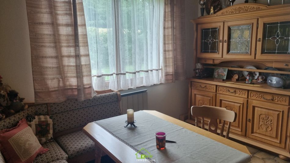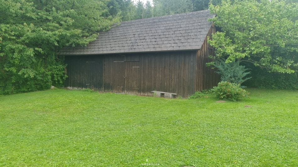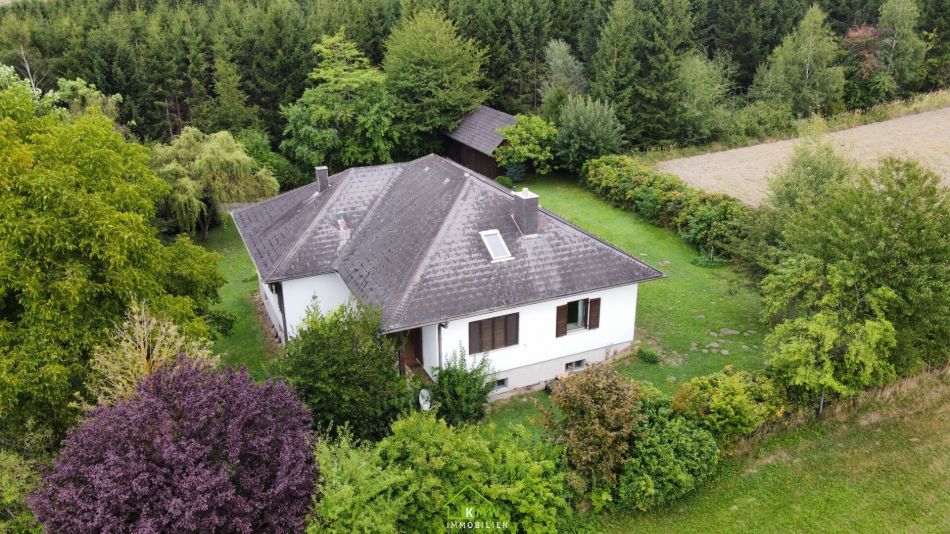 Die Liegenschaft befindet sich in Alleinlage umgeben von Wäldern und Äckern.Die Wohnfläche von knapp 120m² verteilt sich auf Vorraum, Wohnzimmer mit Ausgang auf die Terrasse, 3 Zimmer, Bad, WC und Küche. Der Dachboden ist nicht ausgebaut.
