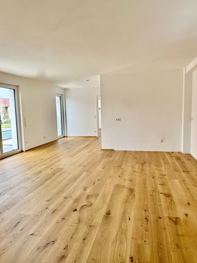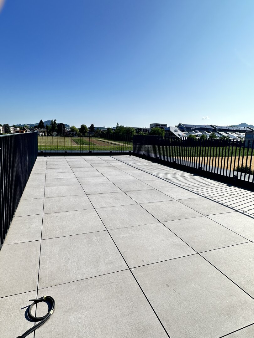 Diese charmante, ca. 81 qm große, sehr gut aufgeteilte Neubau-Wohnung heißt Sie sofort willkommen. Ein großzügiger Eingangsbereich bietet viel Platz und Stauraum. Vom Vorraum aus erreicht man ein lichtdurchflutetes Wohnzimmer mit Zugang zu einem westseitig gelegenen Balkon. Ebenso gelangt man über eine Innetreppe auf eine einmalige, ca. 54 qm große Dachterrasse mit unverbautem, großartigem Ausblick. Genießen Sie laue Sommerabende auf dieser herrlichen Terrasse. Die Wohnung verfügt über eine modern ausgestattete, neue Küche mit Platz für einen Essbereich. Zwei weitere helle Räumlichkeiten stehen zur Verfügung. In der Wohnung befindet sich ein hell verfliestes Badezimmer mit einer sehr geräumigen, begehbaren Dusche, ein WC und ein Waschmaschinenanschluss. Die Wohnung befindet sich im ersten Obergeschoß in einem neu erbauten Mehrparteienhaus mit nur 4 Wohneinheiten. Ein separates Kellerabteil ist dieser Wohnung zugeordnet. 2 PKW-Abstellplätze (1 übdachter Platz) stehen für diese Wohnung zur Verfügung. Großzügiges Wohnen mit Mehrwert wartet auf Sie! Diese geräumige 3-Zimmer-Wohnung besticht durch eine gut durchdachte Raumaufteilung und sorgt so für Behaglichkeit sowie einen optimalen Wohnkomfort. Die Wohnung kann jederzeit besichtigt werden. Vereinbaren Sie noch heute Ihren persönlichen Besichtigungstermin für diese charmante Dachterrassen-Wohnung.