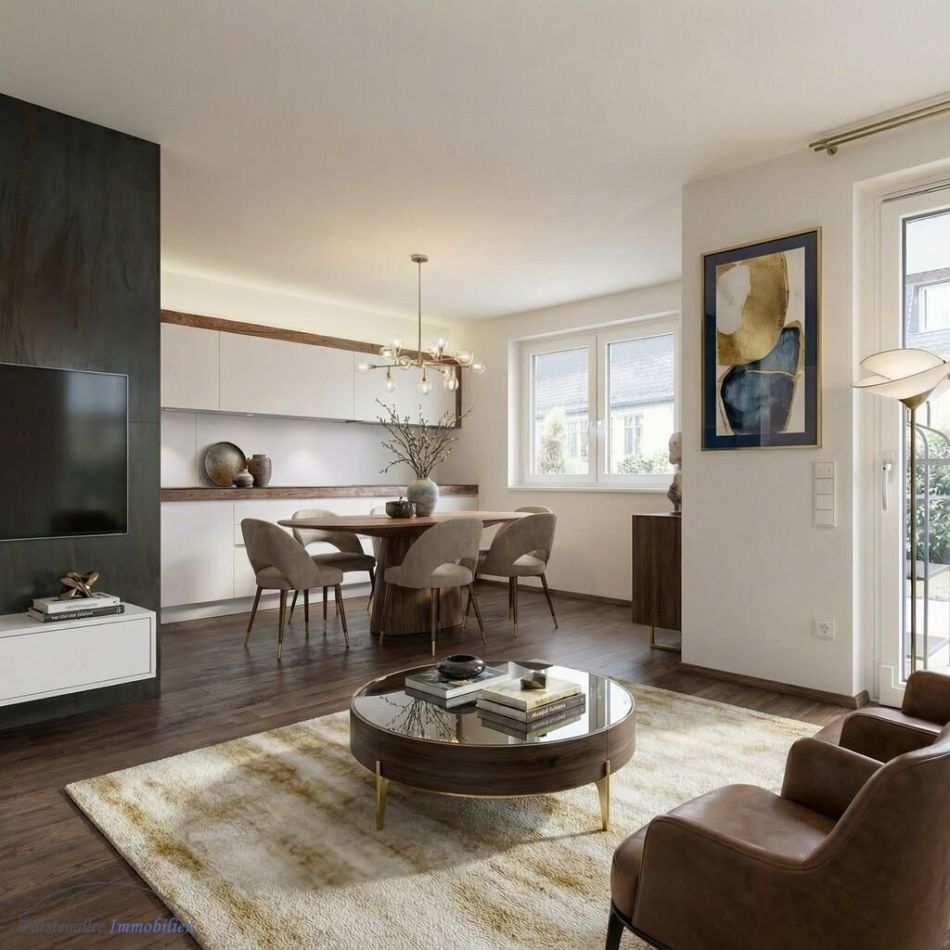 *gemütliches, sonniges Wohnzimmer (ca. 32 m²) mit halb integrierter hochwertiger Küche