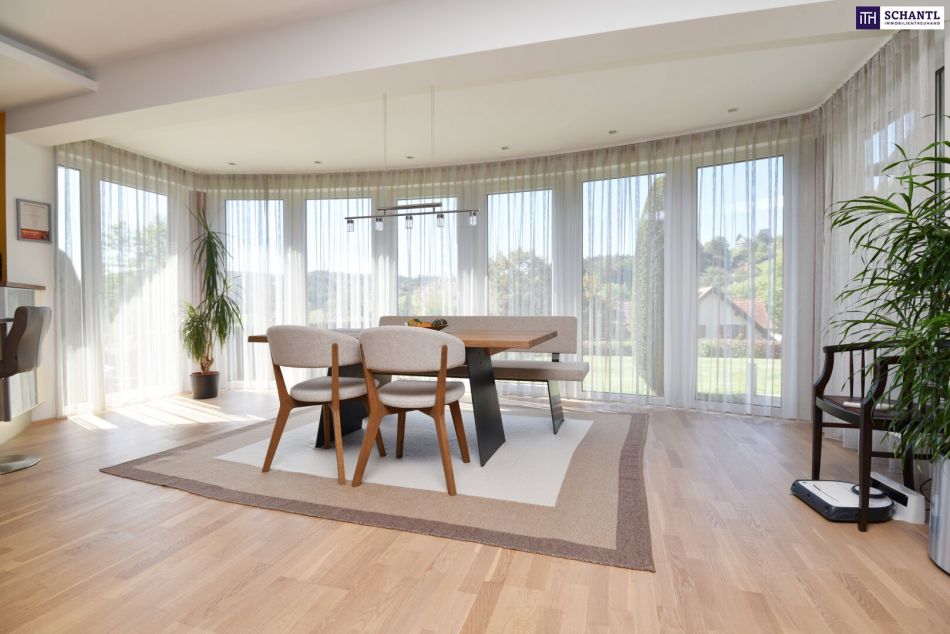 - großzügiger Wohn/Essbereich extremst lichtdurchflutet, offen gestaltet und mit fließenden Übergängen zur eleganten Einbauküche, die höchsten Ansprüchen gerecht wird
