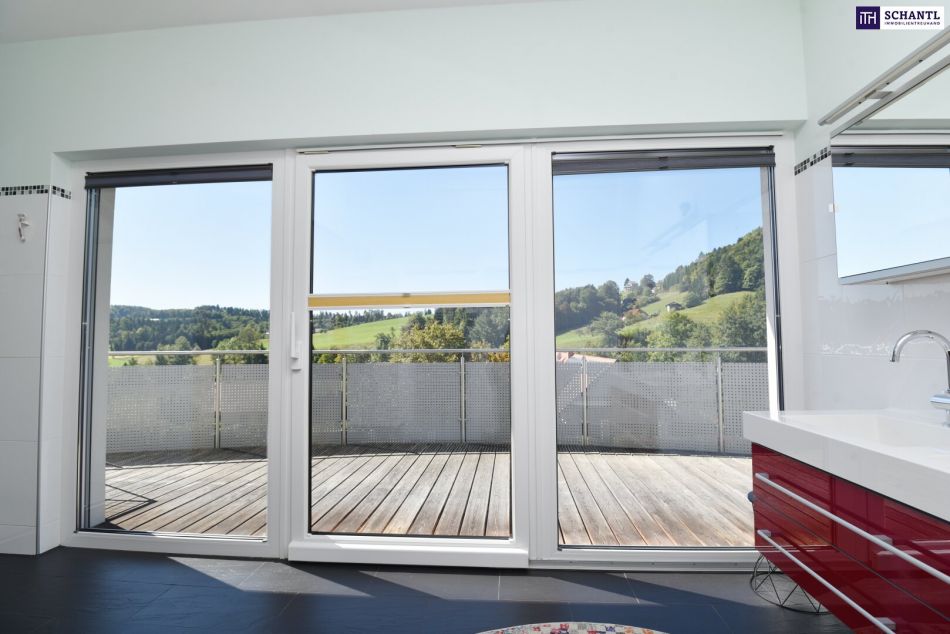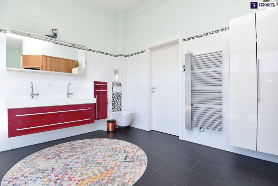 - im OG: riesengroßes Badezimmer mit Dusche & Sauna 16,90m² und Ausgang zum Balkon 17,45m²