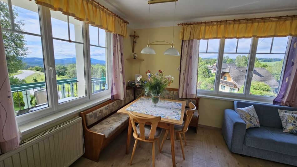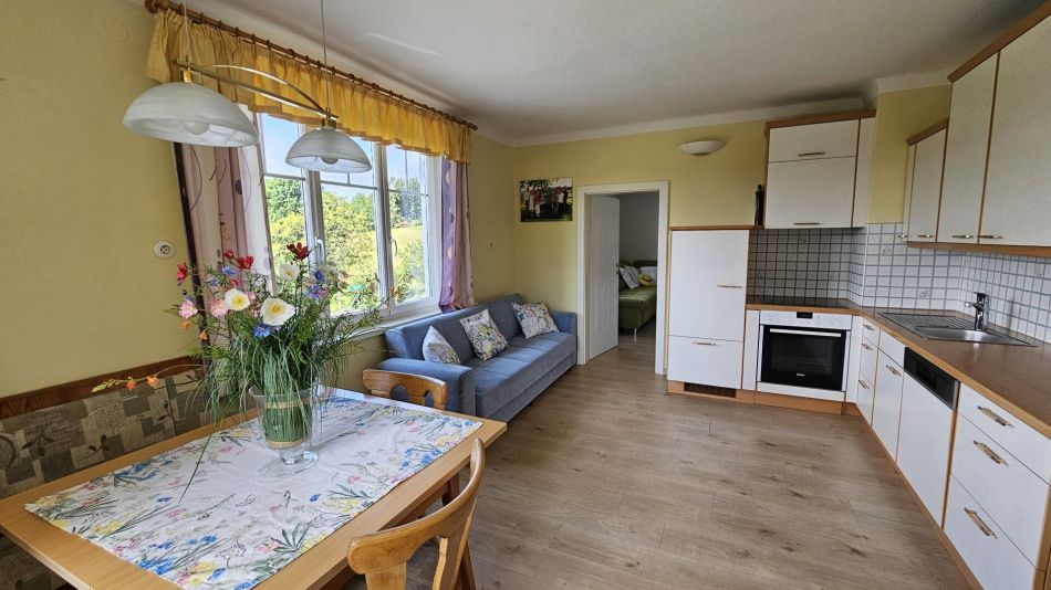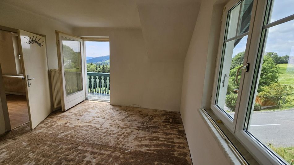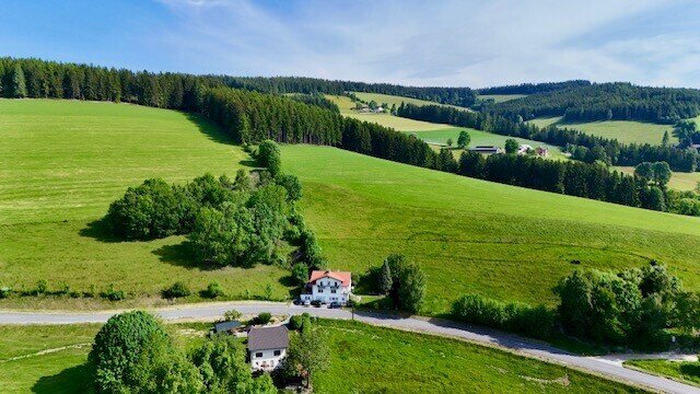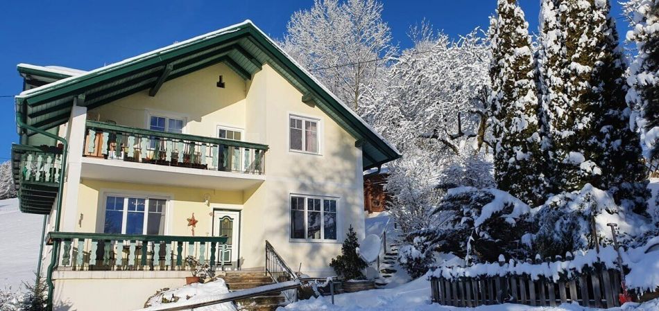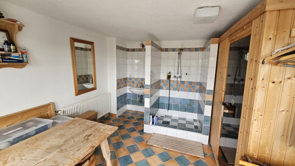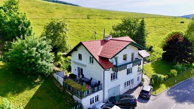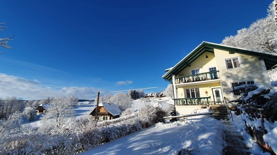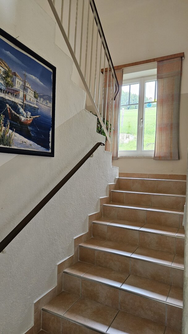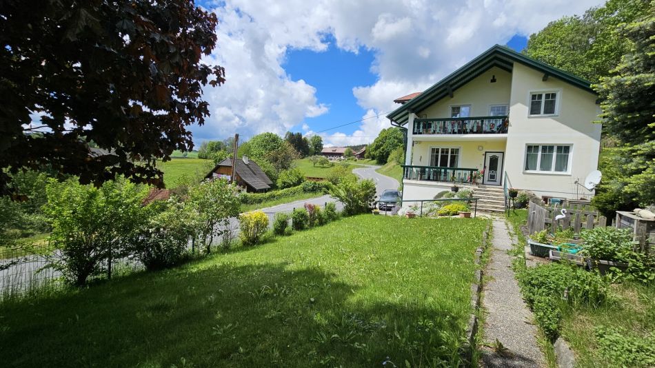 Dieses großzügige Wohnhaus auf ca. 950 m Seehöhe besticht durch seine sonnige, idyllische Lage inmitten unberührter Natur – umgeben von Wiesen, Wäldern und drei Bauernhöfen. Die Wohnfläche von ca. 190 m² verteilt sich auf zwei separat nutzbare Wohneinheiten, ergänzt durch drei Terrassen, einen Balkon, einen gepflegten Garten mit Fischteich, Obstbäumen und blühenden Sträuchern sowie zusätzlichen Nutzflächen im Untergeschoss.Das Haus ist wie folgt aufgeteilt: