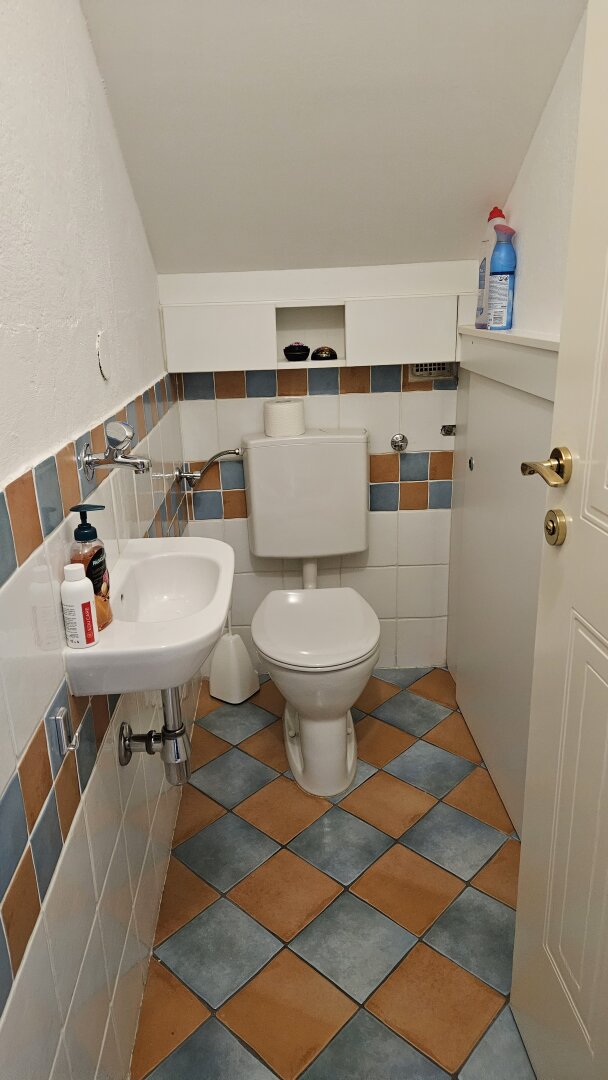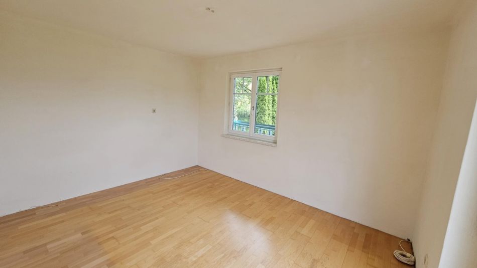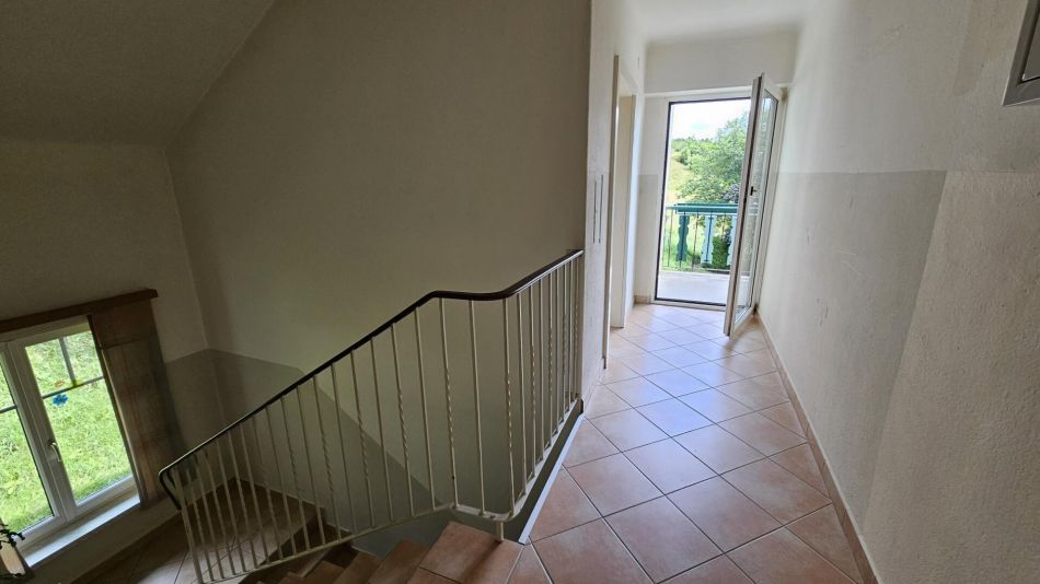 Obergeschoss (ca, 95m2): kleine Wohnküche, offen zu Wohnzimmer, 3 Schlafzimmer, Duschbad mit Fenster, extra WC, zuzügl. Ostterrasse und großer Süd-Westbalkon mit traumhaftem Fernblick.