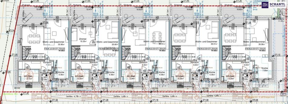 - Einreichplanung: 5 Reihenhäuser mit insgesamt 533,88 m² Wohnfläche