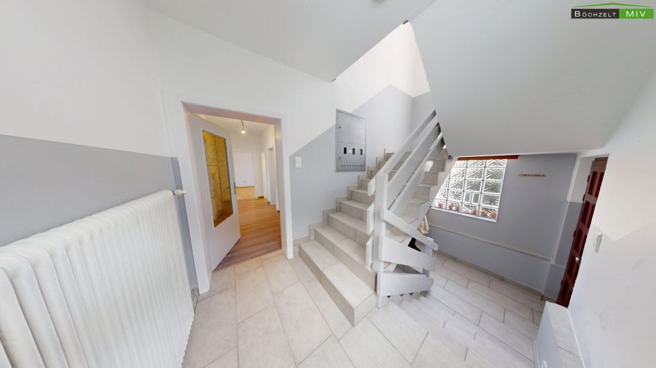 4 Zimmer, 2 Küchen, 2 sanierte Bäder, Garage im Keller etc.