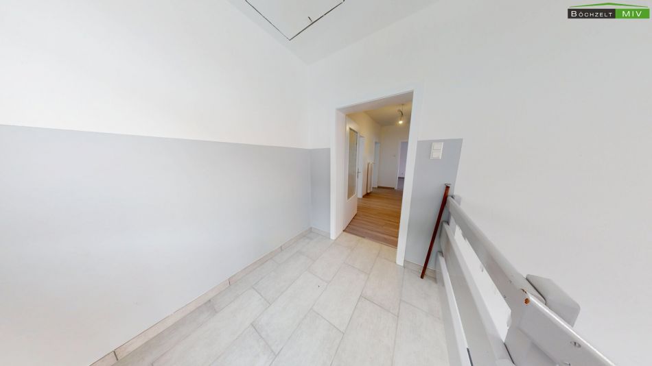 Das sanierte Wohnhaus mit seinen knapp 146 m² Wohnnutzfläche und ca. 75 m² Kellerfläche verteilt sich auf 3 Geschosse. Ursprünglich wurde das Haus 1977 errichtet und 2024 - 2025 umfassend saniert. Das Kellergeschoss mit knapp 74,50 m² lässt sich einerseits von einer Innenstiege, andererseits von außen über die innenliegende Garage erreichen. Dort befinden sich neben diversen Lager- und Kellerräumlichkeiten auch eine Garage, der Heizraum sowie eine Waschküche die im ehemaligen Schutzraum untergebracht wurde. Das Erdgeschoss mit seinen knapp 72 m² besteht aus Vorraumbereichen, Abstellraum, einem sanierten Badezimmer samt Walk-in-Dusche und WC, einer Küche, Schlafzimmer und einem Wohnzimmer. Im Dachgeschoss mit seinen knapp 73,9 m², befinden sich Vorrräume, ein WC, ein Badezimmer mit Dusche und Wanne, eine Küche sowie 2 Zimmer. Man gelangt vom eigentlichen Wohnzimmer auf den knapp 8,7 m² großen Balkon. Die Liegenschaft verfügt über 2 getrennte Wohneinheiten weshalb man auch an eine Zweifamilienwohnhaussnutzung denken könnte.
