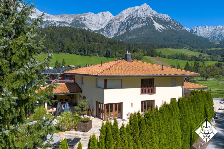 Alpine Exklusivität im toskanischen Stil – Wohnen am Wilden KaiserDieses außergewöhnliche Anwesen in Scheffau vereint auf eindrucksvolle Weise die alpine Kraft der Tiroler Berge mit der eleganten Leichtigkeit italienischer Architektur. Auf rund 1.000 qm Grund und einer Wohnfläche von ca. 350 qm wurde 2005 ein Haus geschaffen, das sich durch höchste Bauqualität, feinste Materialwahl und eine zeitlos mediterrane Formensprache auszeichnet.