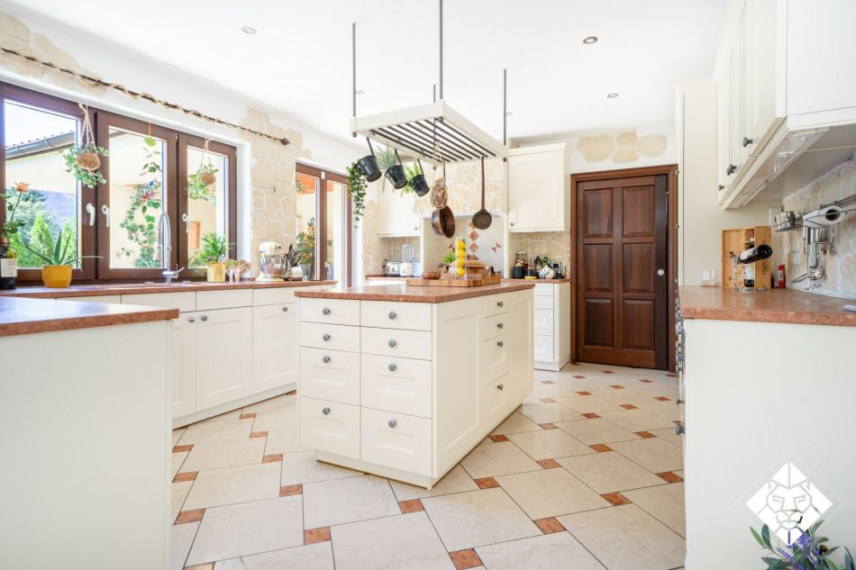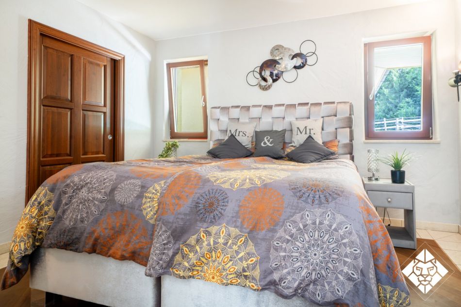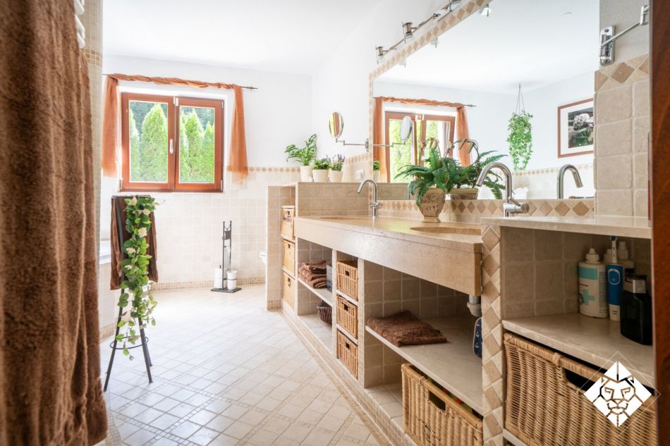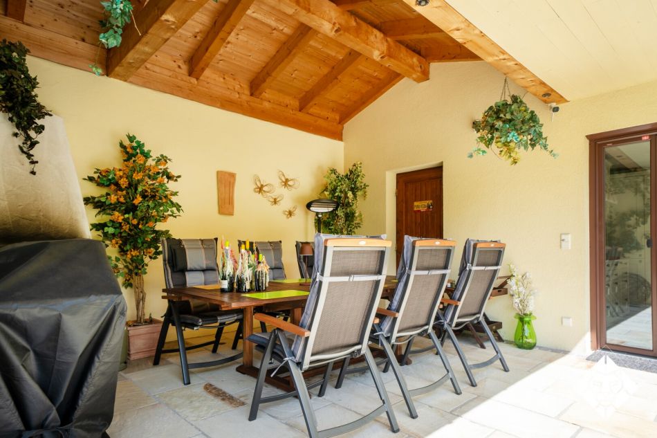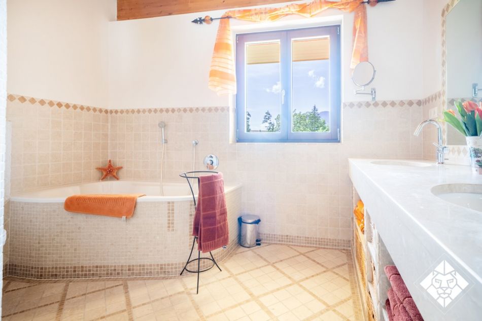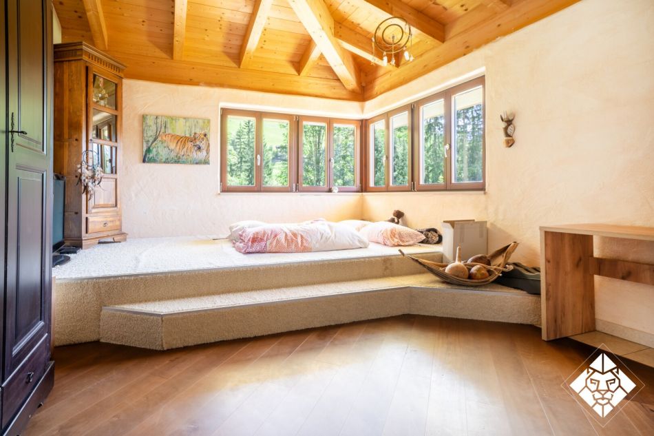 Besonders hervorzuheben ist der im Keller speziell angelegte Wellnessbereich, der als italienische Grotte nachempfunden wurde. Hier verbinden sich Steinarchitektur und stimmungsvolle Beleuchtung zu einem einzigartigen Rückzugsort. Ein Dampfbad ist bereits vorbereitet und kann mit wenig Aufwand ergänzt werden. Ergänzt wird der Bereich durch einen Weinkeller für edle Jahrgänge – ein idealer Ort, um alpine Lebensart mit mediterranem Dolce Vita zu vereinen.