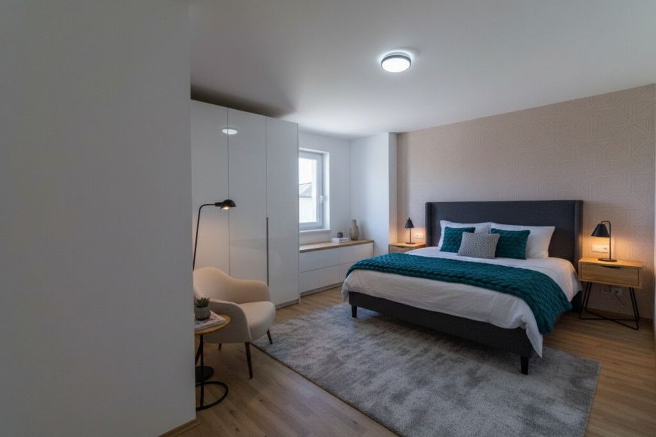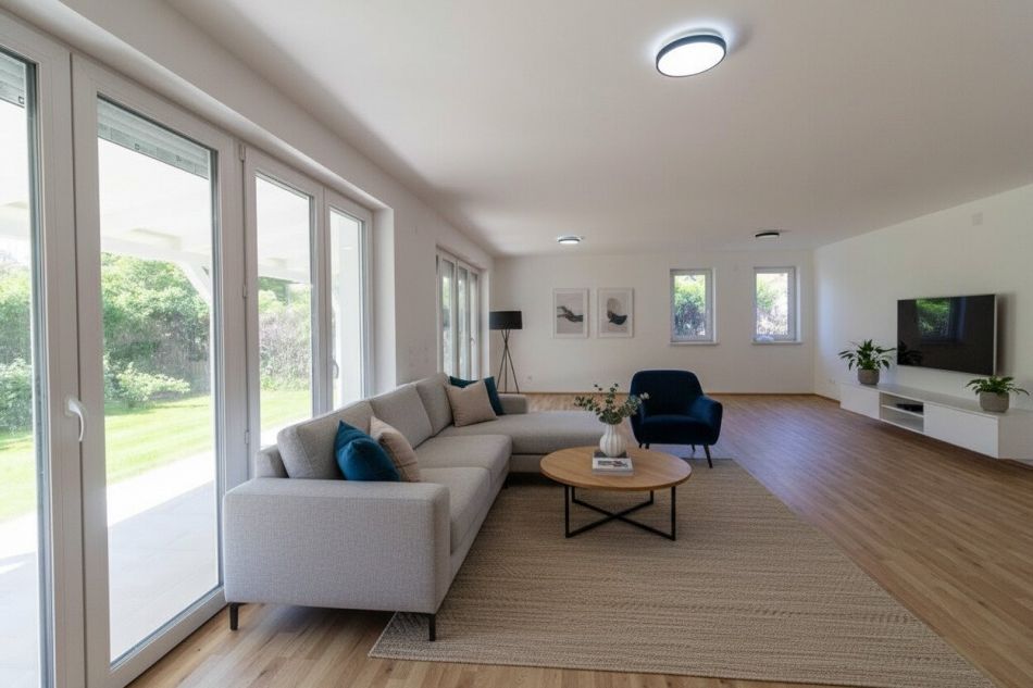 „Die dargestellten Möbel und Einrichtungsgegenstände dienen der besseren räumlichen Vorstellung und wurden mittels KI visualisiert. Sie sind nicht Bestandteil der tatsächlichen Ausstattung der Immobilie.“