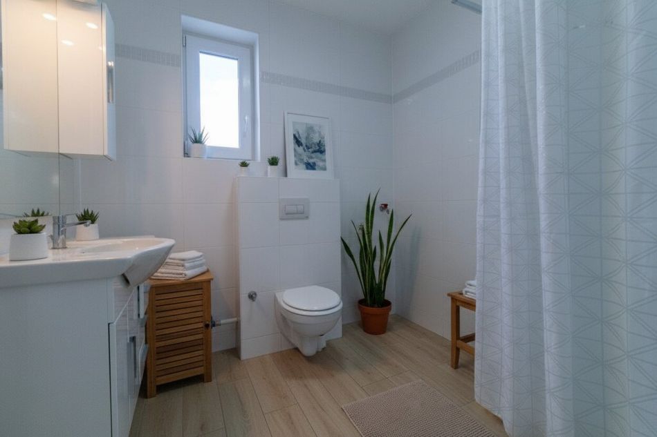 Die beiden eleganten Bäder sind mit hochwertigen Fliesen ausgestattet und bieten mit einer Badewanne und Fenster zusätzlichen Komfort. Hier können Sie nach einem langen Tag entspannen und neue Energie tanken. Die Fußbodenheizung sorgt in den kühlen Monaten für wohlige Wärme und ein angenehmes Raumklima.