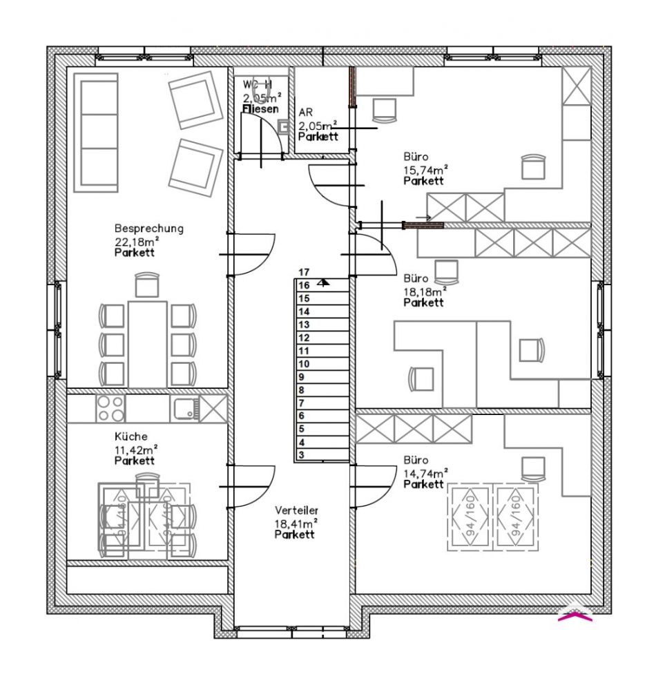 - Schallschutzglas trotz Straßenlage – konzentriertes Arbeiten garantiert