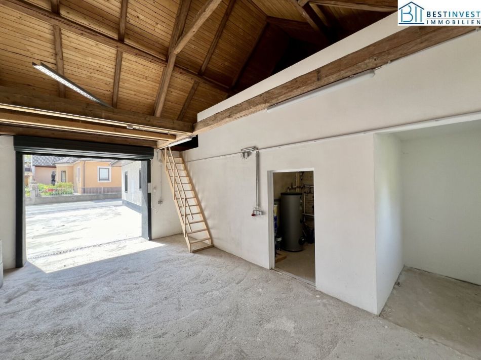 Die großzügige Garage (ca. 30 m² mit zusätzlichem Ausgang in den Garten) bietet zudem Schutz für Ihr Auto vor Wind und Wetter.