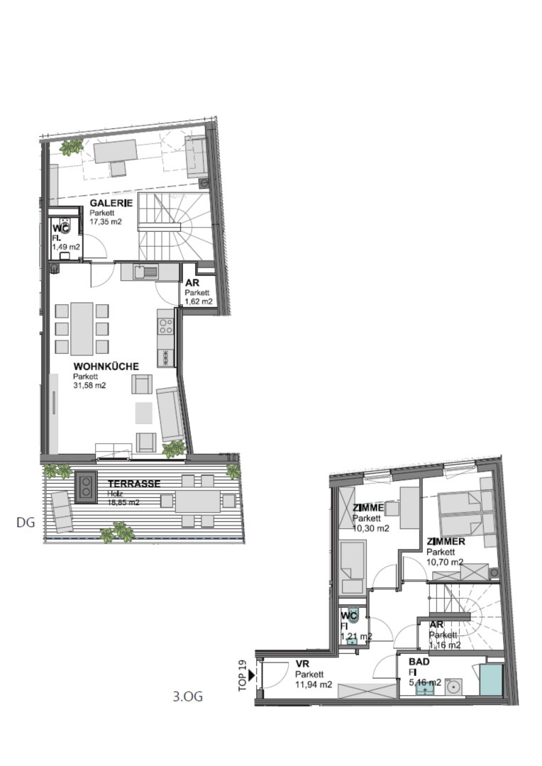 88,52 m² Wohnfläche + 18,85 m² Dachterrasse