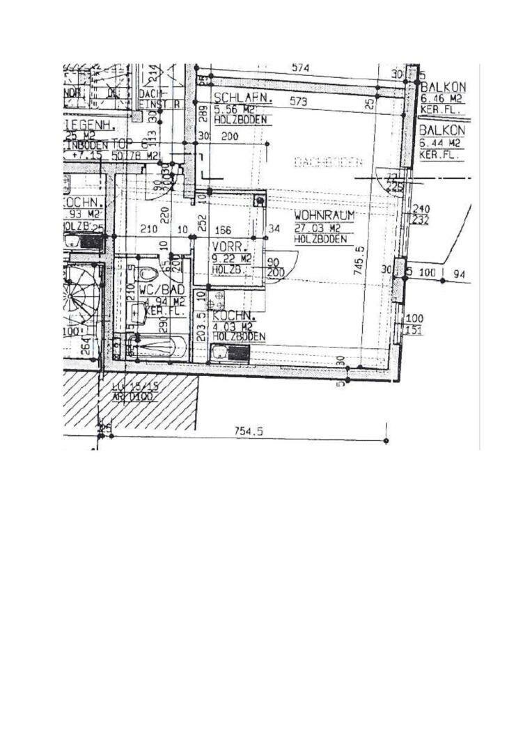 Raumaufteilung: Vorraum, Kochnische, Einzelwohnraum mit Balkonzugang, Bad/WC