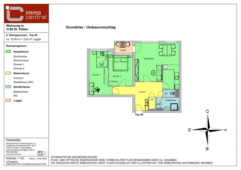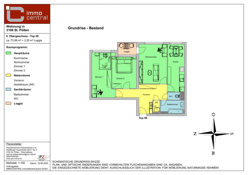 Fläche: ca. 73,99 m² inkl. Loggia + Kellerabteil