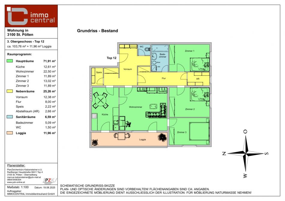 Fläche: ca. 116,02 m² inkl. Loggia + Kellerabteil