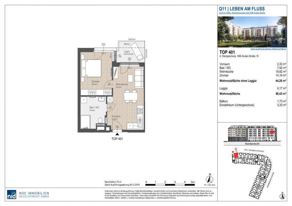 Nutzfläche: ca. 48,43 m² inkl. Loggia + Balkon + Einlagerungsraum, 10 Jahre befristet zu mieten, Kündigungsfrist 3 MonateGesamtmiete: € 699,00 inkl. BK und USt.