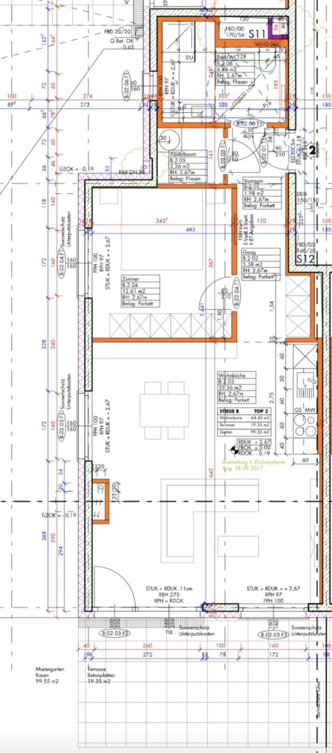 64,33 m² Wohnfläche + 19,35 m² Terrasse + 100 m² Garten