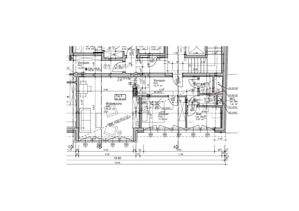Raumaufteilung: Vorzimmer, Wohnküche, Schlafzimmer, Abstellraum, Tageslichtbadezimmer mit Walk-In Dusche, separates WC