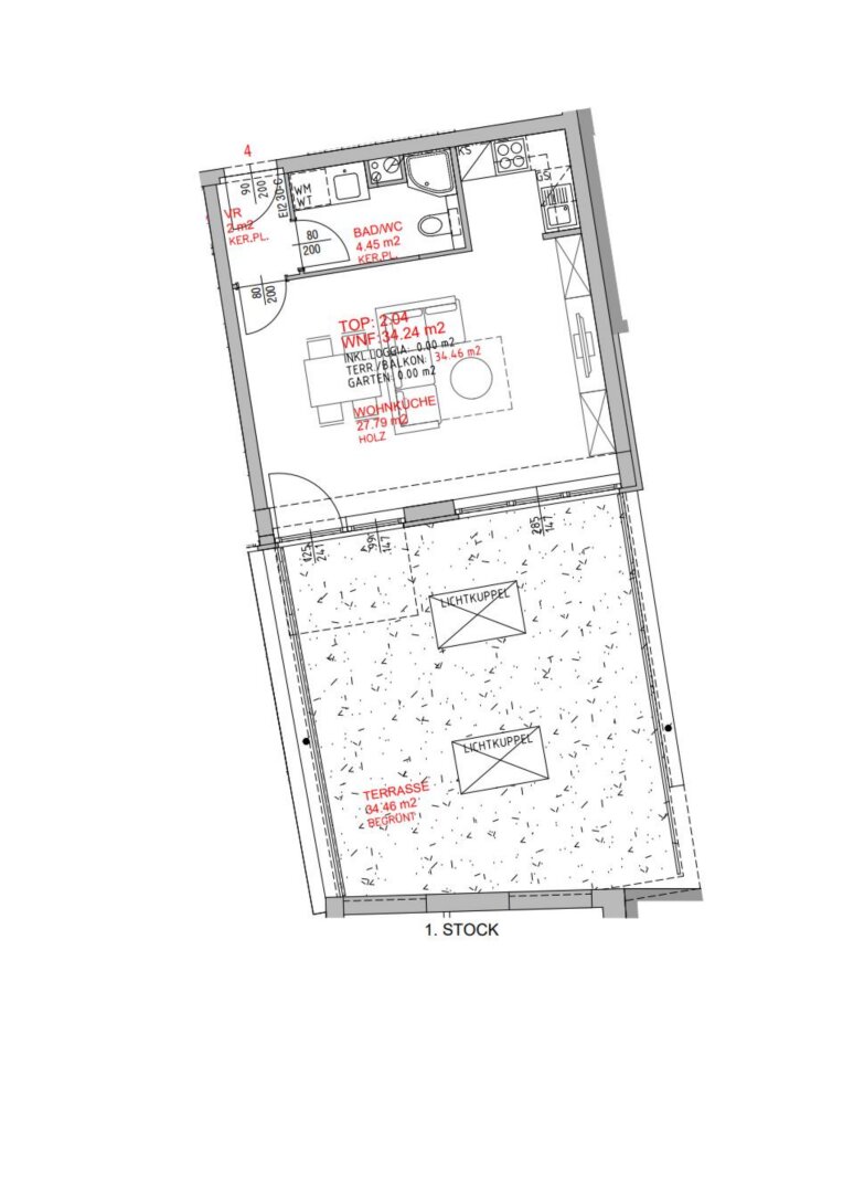 34,24 m² Wohnfläche + ca. 37 m² Terrasse