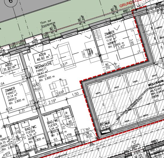 Ausstattung: Fußbodenheizung, Echtholz-Parkettböden in den Wohnräumen, hochwertiges Feinsteinzeug in den Nassräumen, elegante Marken-Sanitärausstattung, Küchenausstattung samt Einbaugeräte