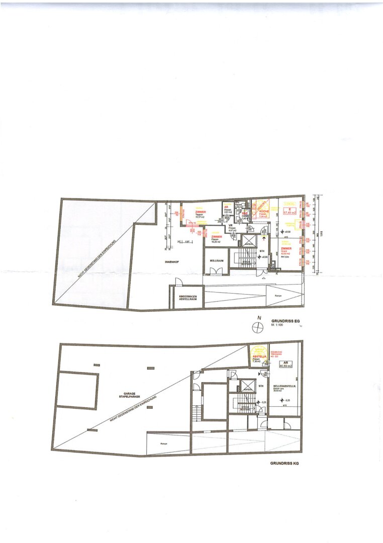 Das Objekt gliedert sich in: Verkaufsraum/Büro, 2 weitere Bürozimmer, Teeküche, Waschraum und separates WC, Kellerlagerraum