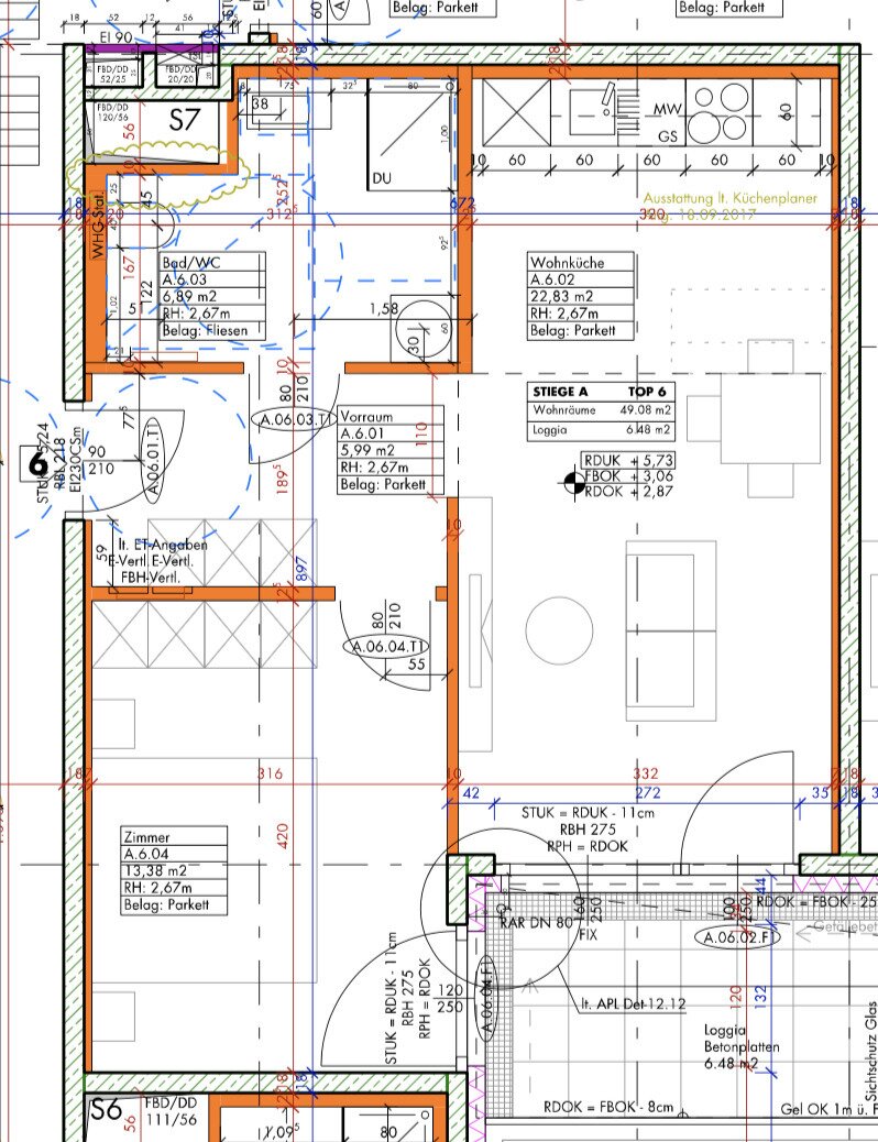 Raumaufteilung: Vorraum, Wohnküche, Schlafzimmer, Loggia, Bad/WC
