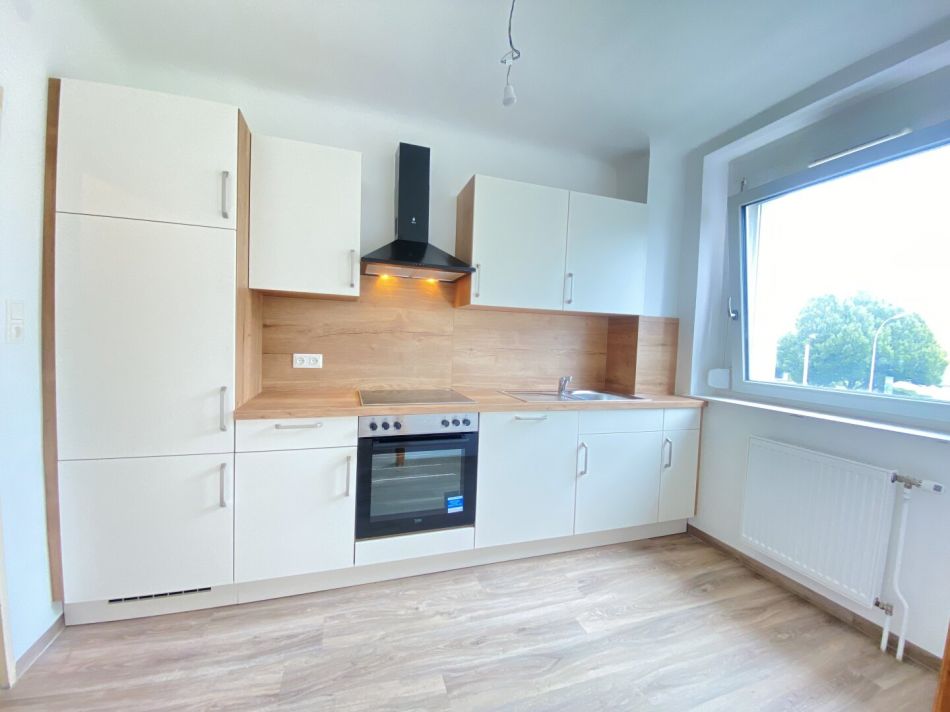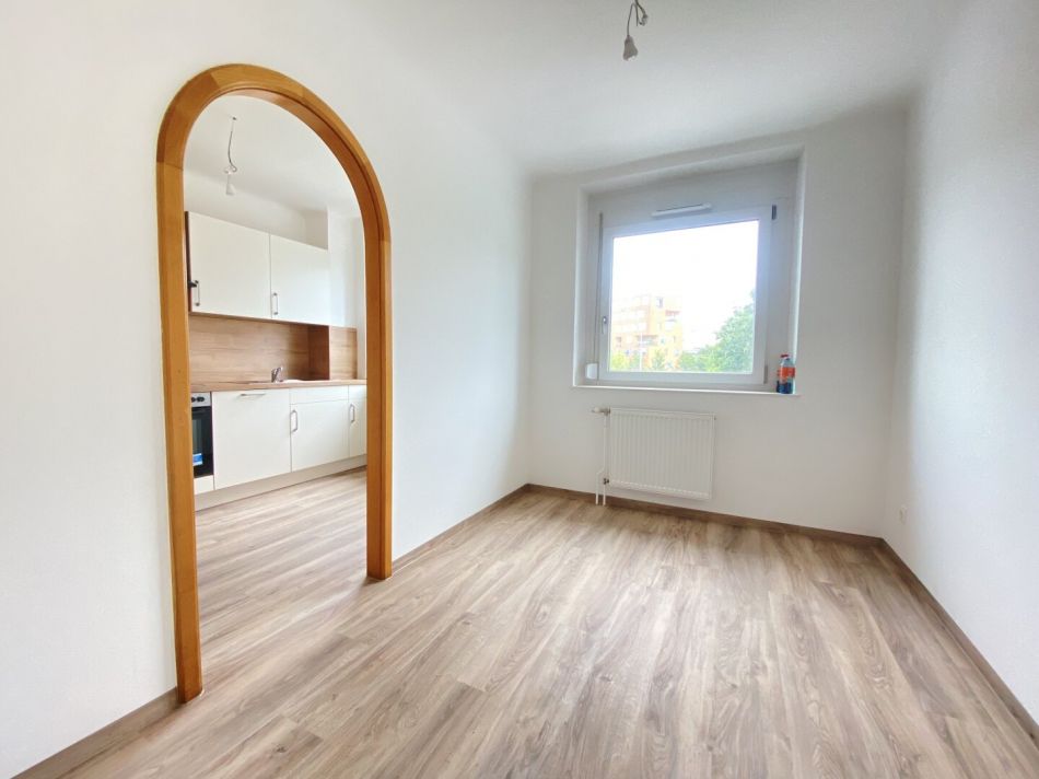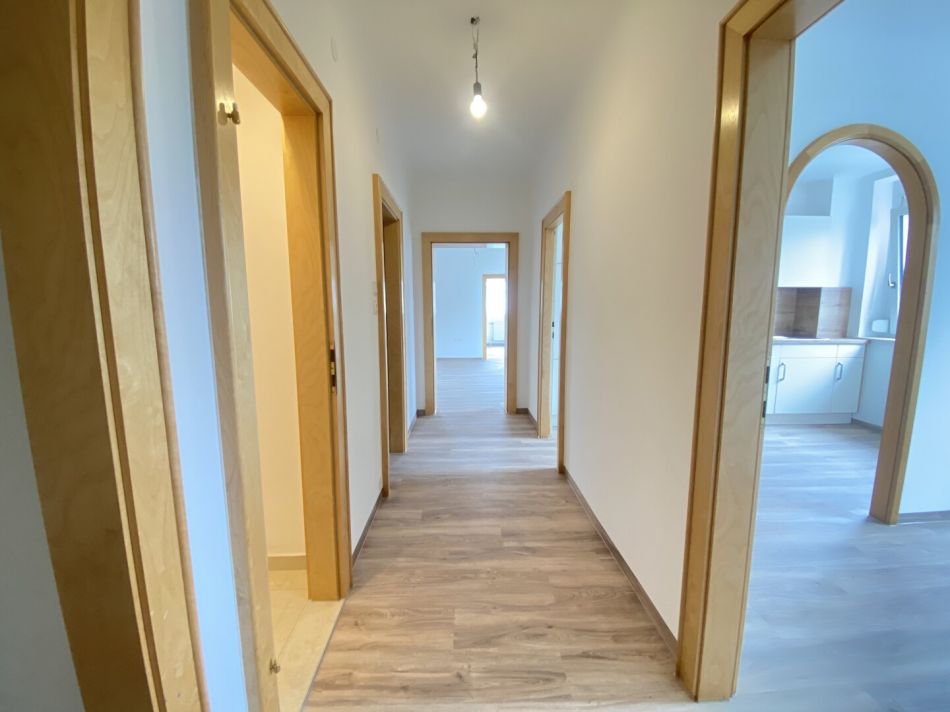 Die Wohnung gliedert sich in einen Vorraum, Einbauküche, Wohnzimmer, Balkon, drei getrennt begehbare Schlafzimmer, Fliesenbad und separates WC.