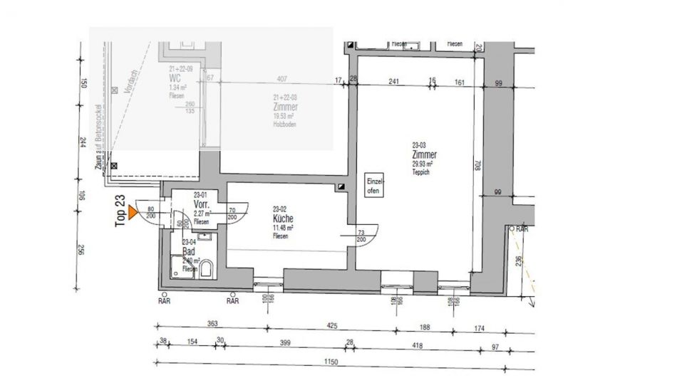 - € 322,00 Miete inkl. Betriebskosten + 10% USt.