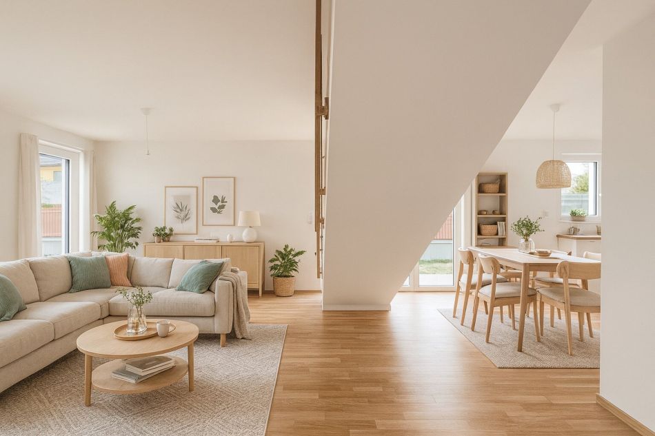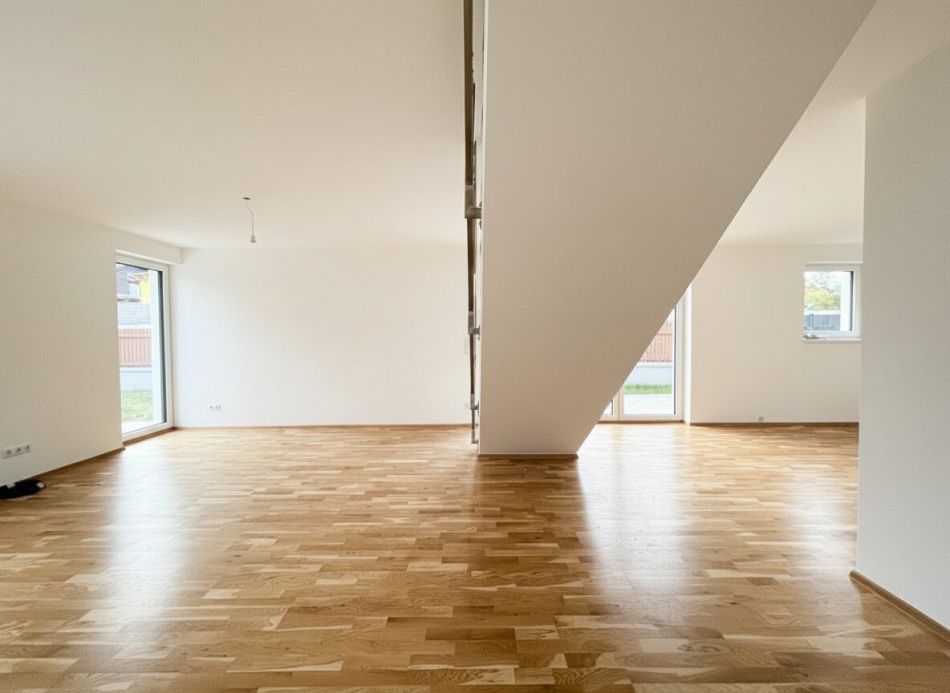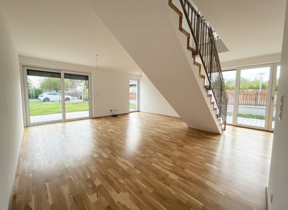 In wunderschöner, absoluter Ruhelage befinden sich in der Leopold Lehnerstraße in 2751 Steinabrückl 12 hochwertige Doppelhaushälften in ökologischer Ziegelmassiv-Bauweise. Alle Häuser verfügen über ein Erdgeschoss sowie ein Obergeschoss, und vier der Doppelhaushälften haben zusätzlich einen Keller. Die Wohnnutzflächen reichen je nach Haushälfte von ca. 112 m² bis 132 m², sodass insgesamt eine Nutzfläche von etwa 1.710 m² (inkl. Keller) geschaffen wurde.