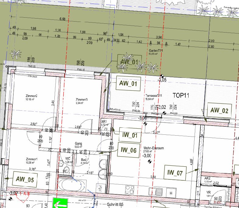 Vorraum – Abstellraum – Bad mit Dusche oder Wanne – separates WC – Wohnküche – Schlafzimmer - Kinderzimmer - Hobbyzimmer - Garten - Terrasse